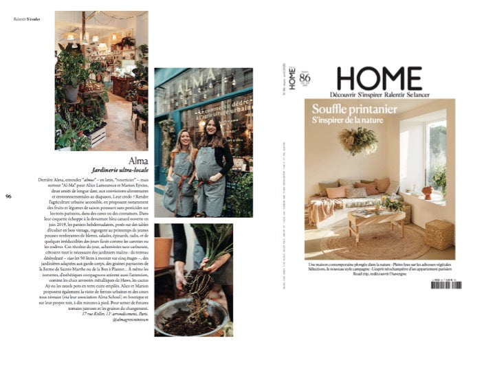 "Derrière Alma, entendez “almus” – en latin, “nourricier” – mais surtout “Al-Ma” pour Alice Lamoureux et Marion Eynius, deux amies de longue date, aux convictions alimentaires et environnementales au diapason. Leur credo ? Rendre l’agriculture urbaine accessible ! "