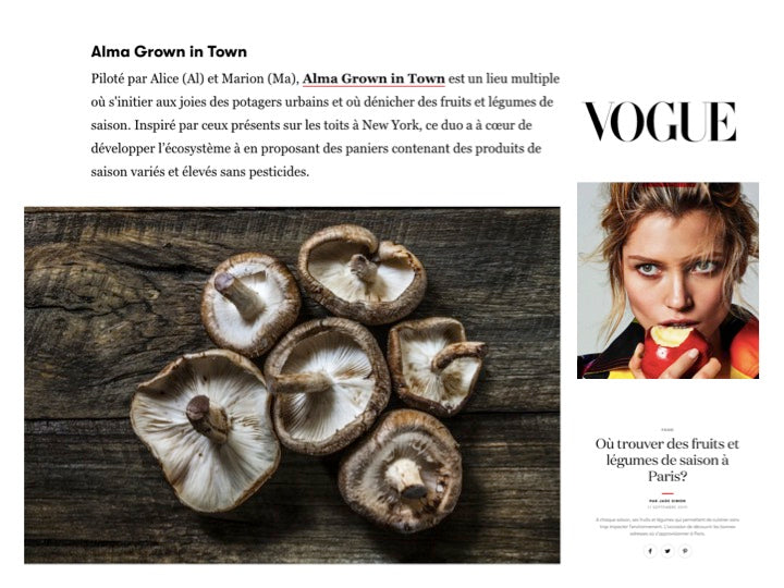 “Les fermes urbaines deviennent de plus en plus populaires suite à la crise sanitaire […] ALMA Grown in town dans le 11e arrondissement de Paris est très investi dans l’horticulture et l’apiculture urbaine.“